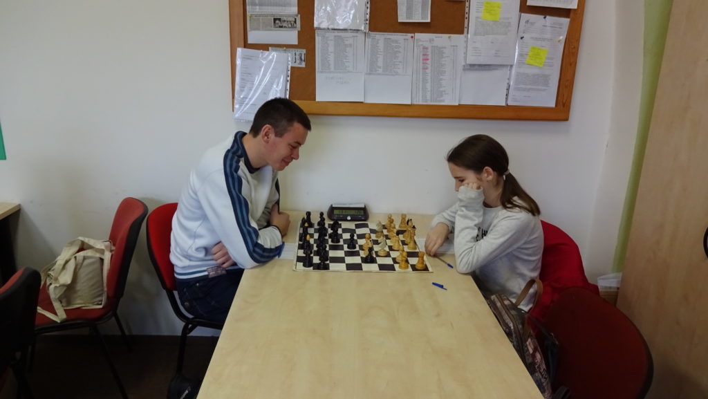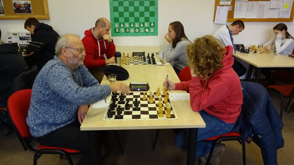 Vezmu to popořadě. První prohru jsem zaznamenal u Valerije s mladou slečnou Zemanovou. Nějaký dámský gambit. Mastili to asi velmi rychle, jelikož za chvíli jsem viděl pouze na šachovnici pro černého pěšce a věž proti střelci a třem spojeným pěšcům. Už teď to dost smrdělo prohrou, jelikož pěšci šly hrdě do dámy. Z doslechu vím, že mohl ještě urvat remízu, kdy na šachovnici zůstal soupeřce pěšec a jalový střelec. Nezahráno správně, a tak prohráváme 0:1