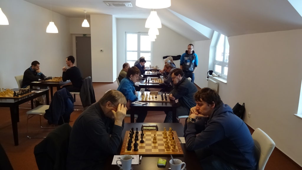 u mě s Luďkěm se nehrála králka, ale něco jako „pircka“, jinak s označením velmi ostrá jednoznačně souhlasím 🙂 měl jsem tlak, který jsem na jednom místě vypustil (přehlédl jsem vazbu De4), poté v jeden moment mohl asi Luděk zachránit remízu – přechod do koncovky D+S na každé straně asi vynucený nebyl, ale rozhodně by byl za bílého nejnadějnější, i když remízový… na čtvrtém prkně určitě mohl černý hrát dále, ale na velkou výhodu to nebylo – to by bylo třeba lépe reagovat již dříve… výhradu mám jen k pořadí dokončených partií – myslím, že na 2,5-2,5 srovnával Franta Hostička na třetí (který v průběhu partie určitě nestál dobře) a až po něm skončila partie Erban-Krbúšik… jelikož jsi ale v té době hrdinně držel těžkou koncovku, tak chápu, že takový „pár-minutový detail“ nevnímáš… a ještě dotaz – vyhrával za bílého ve Tvé partii přechod do pěšcovky g6+? Nebyli jsme si tím vedle jistí, ale spíše jsme se přikláněli k tomu, že ano…