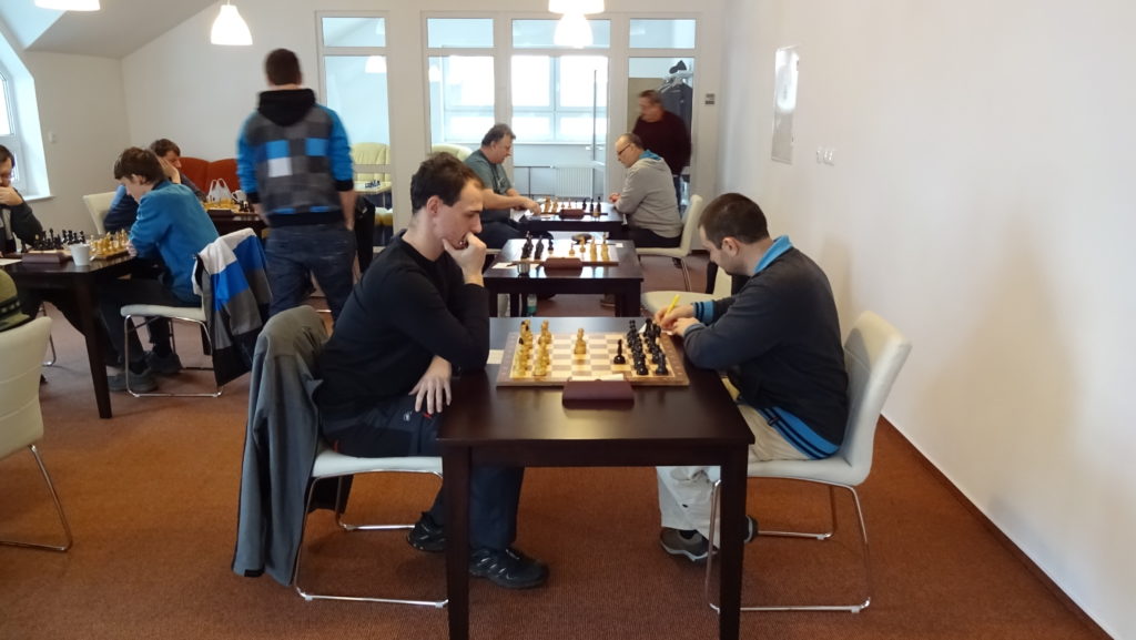 Jak byl čas proti nám na třetí desce, naopak na 2. hrál v náš prospěch, kde Honza Žilavý měl nějakých 12 minut proti minutě soupeře. Jeho hra se zvrhla v boj o přežití do 40 tahu, ale k tomu byla cesta ještě hodně daleká. Soupeř z rovné hry poztrácel několik pěšců do horší pozice. Konec jsem neviděl, ale vsadil bych boty, že v tom hrála chyba z nedostatku času. Pro nás vítaná zpráva a odvážíme si bod z 2.desky!!! Stav se vyrovnává na 3,5 – 3,5