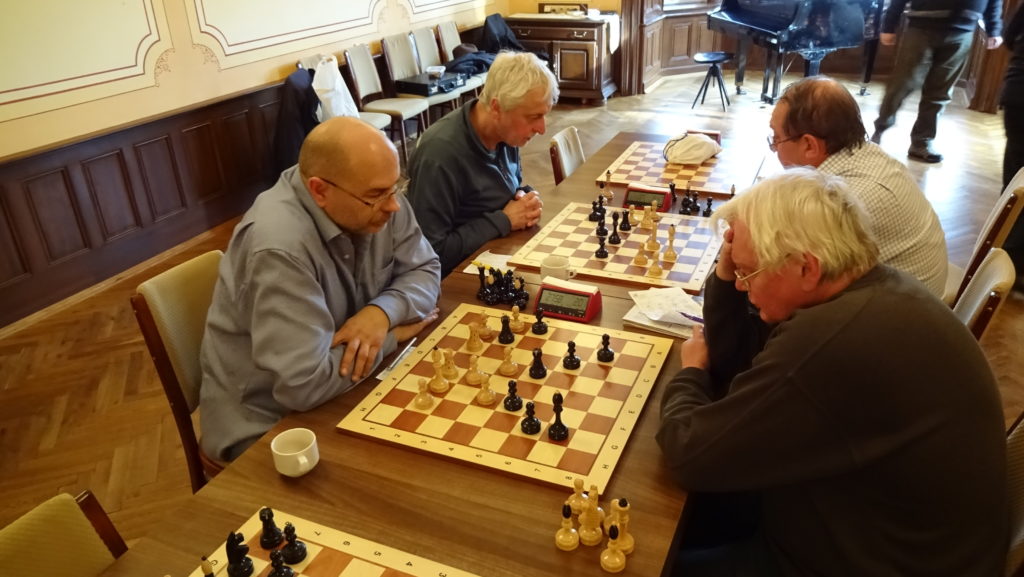 Vše leží na Lojzovi Bartošovi, který na 2.desce s pěšcem více se snaží vyhrát koncovku V+J. Říkáme si, že je to vyhratelné, ale bude to ještě hodně složité. Nakonec se ale zadařilo a my si připisujeme cenný bod. Stav 5 – 3, tři body domů a 1. místo ve skupině!!!