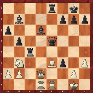 c) 29. … Dxe1+ 30. Vxe1 Vxe1+ 31. Dxe1 Vxf4 32. De8+ Sf8 33. gxf3 + – a bílý vyhraje