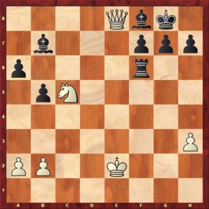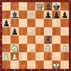 Duel na první desce rozhodla počínající časová tíseň. Prakticky po celou dobu vyrovnaná pozice sklouzla nevýhody po mé nepřesnosti. Poté jsem se rozhodl obětovat polokrektně jezdce, načež jsem dostal „hák“, ze kterého už jusem nevyšel živý 🙂 Správnou variantu jsem ohodnotil jakožto prohranou. Myslím, že závěr byl hodně zajímavý, pojďme se na něj podívat …