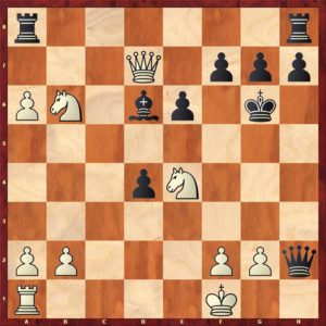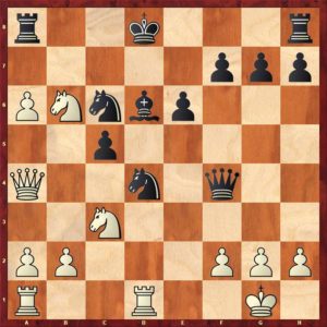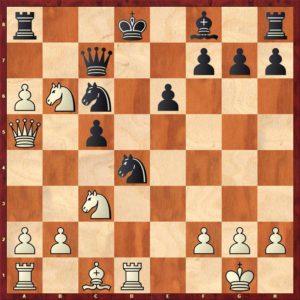 To nic nekazí, ale „hák“ 20.Sf4!! v pozici byl. Uveďme ilustrativní, ale nevynucenou variantu … 20. … Dxf4 21. Da4! (visí Jc6 i Va8) 21. … Sd6