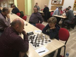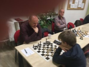 Přestože se hrály pouze dvě partie OP, průběh byl velmi zajímavý. Lojza postavil „pěšcovou falangu“, stál lépe. Následně obětoval figuru za útok, podle mého názoru byl v pozici mat (ale mohu se mýlit, měl jsem vedle „svoji práci“). Nakonec měl figuru méně za dva pěšce, pak prý hrál dokonce opět na výhru. No a ve výsledku, když máme ty vánoce :-), se borci o bod rozdělili …