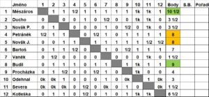 Vzhledem k časovému zaneprázdnění nestihne dohrát oddílový přebor Jarda Odehnal i Jirka Severa, rozhodčí Václav Hašek byl nucen zbylé partie zkontumovat.