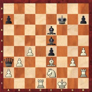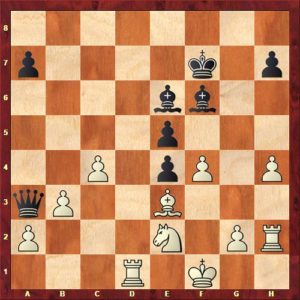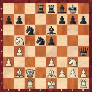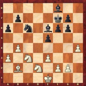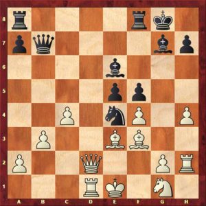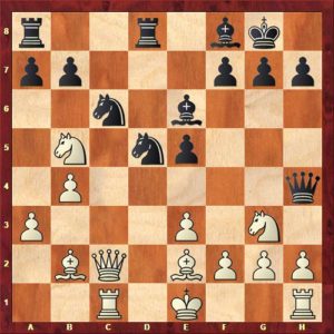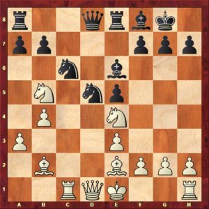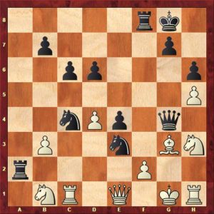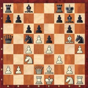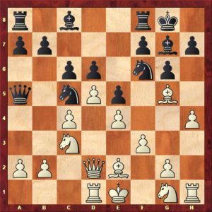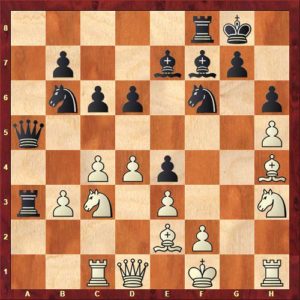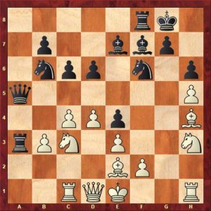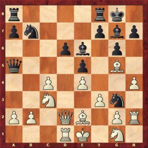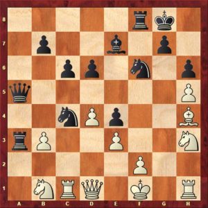 Bíly byl v dané pozici na tahu a nakonec po úvaze zvolil 15.b3. V průběhu přemýšlení nad pozicí jsem se obával možnosti 15. Jd5 a nyní jsem počítal možné komplikace po „drzém“ 15. …Dxa2 16.Jf6+ … Nakonec jsem se dopočítal, soupeř však „zahnul“ výše zmíněným 15.b3 … Otázka zní …