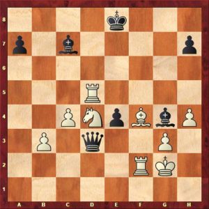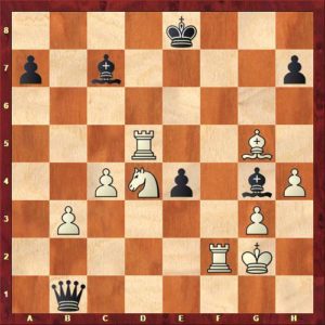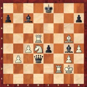 c) Černý má v pozici úder nebývalé slíly 🙂 a to 22. … exf4 23. Sxf4 Sc3 a bílý odchází „na párek“