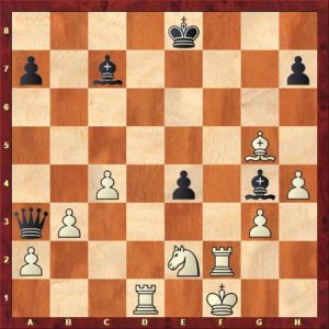 Malý diagrámek (jak říkám při tréninku) na závěr. Bílý se po 27. … Dg4+ vzdal. Jak by černý zakončil partii po 28. Sg3 ?