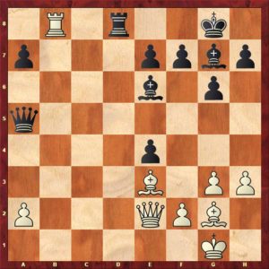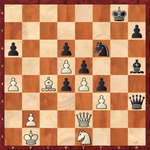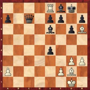 Shodou okolností přišel druhý den Zdeněk Vybíral na tradiční šachovou hodinku. Vítám ho s připraveným diagramem … 🙂 a vyprávím krátkou včerejší historku (zamlčím však „úder“).