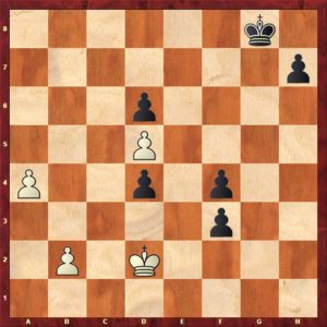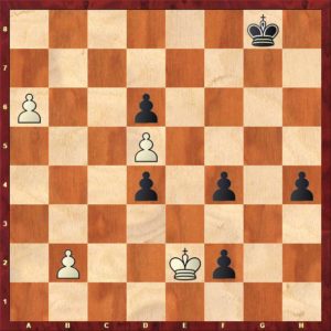 8. a6 uz nejde pro jednoduche Jd7 a Jb6 … a černý vyhraje. Teď se zase může zdát, že bílý pěšec je nechytatelný, zatímco černí pěšci nikam nedojdou.