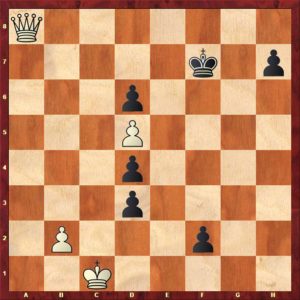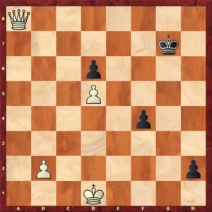 Pro úplnost, jde to i otočit, čili 11. …d3+ atd. ,ale POZOR!!! nikoli 11. … h3 ?? pro 12. a7 h2 13. a8D+ Kg7 14. Da1 a bílý jednoduše vyhraje. Po 11. .. Kg7!! to vypadá, že si černý dělá malinko srandu, ale …