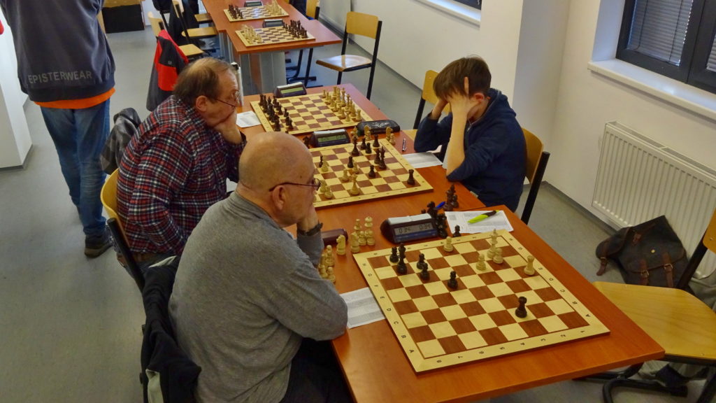 Lukáš Novák jde za mnou, že soupeř nabízí remízu. Zde jsem to viděl velmi nejasně a pozice soupeře mi přišla dobrá, bez slabin. Souhlasím a první půl bod je na světě. Stav 0,5 – 0,5