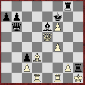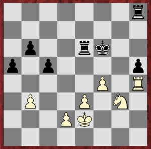 Pozice po tahu černého Vxh2+, černý cítí, že smyčka kolem jeho krále se pomaluje zužuje a tak volí radikální řešení.