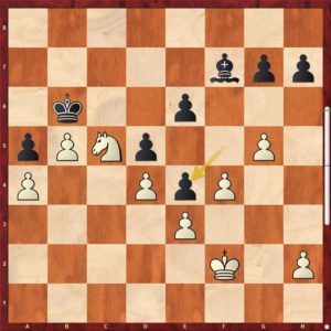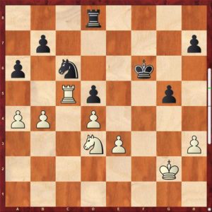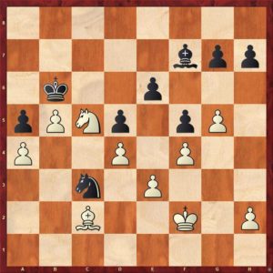 Pozice bílého je vyhraná, černý má poslední chabou šanci někdy obětovat střelce na b5. To by ovšem bílý musel mít jezdce i krále dostatečně daleko. Tento motiv si bílý samozřejmě pohlídal a pozici dovedl k bezpečné výhře. Paráda … vítězíme těsně 4 1/2 – 3 1/2, úvod do sezóny je tak příjemný.