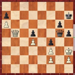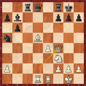 Bílý stojí náramně, to je vidět pouhým okem. jak však dál? Zdeněk zahrál 1. Vg1 !?, na což po partii žehral. Peskoval se, že nehrál razantní 1. b5! Věc však není tak jednoduchá … podívejme se na to.