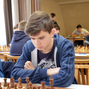 Matyáš se pustil do soupeře s vervou hned z výkopu … 1. d4 f5 2. g4!? Poté se hra ukidnila a došlo na strategické manévrování, probíhala tzv. zákopová válka. Pozice byla zřejmě v rovnováze, černý však na okamžik polevil v pozornosti a přišel dvoutahově o pěšce. Pozici jsem začal de facto vážně sledovat až ve chvíli, kdy se Honza Havlík rozhodoval, zda vzít či nevzít remízu. Právě vzhledem k Matyášově partii se rouhodl remis přijmout.