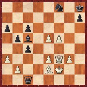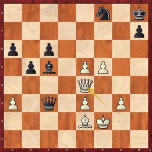 Pozice je „zničehonic“ rovná, ovšem rovná dle pc. Černý MUSÍ odevzdat všechny své figury, což je jistě psychologicky (ale i lidsky 🙂 ) náročné a hlavně!, zanechává to stopy na duševním rozpoložení hráče … Pojďme se posunout dále …