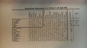 V roce 1922 se konal v lázních Piešťany velký mezinárodní turnaj s hvězným obsazením. Mezi účastníky byli budoucí mistři světa Alexander Alechin či Max Euwe, kandidáti na nejvyšší titul či vyzývatelé Jefim Bogoljubov, Dr. Siegbert Tarrasch. Z dalších špičkových hráčů zmiňme např. Rudolfa Spielmana, či našeho Richarda Rétiho.