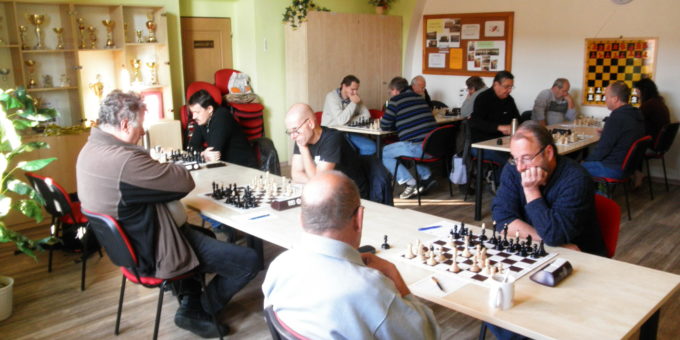 Předposlední partie na 5.šachovnici, kde si odbíjí 1.zápas za 2.divizi Roman! Caro-Kann, vypadá to solidně, plus mínus rovná pozice. Dlouho se nic moc nedělo, najednou vidím, že má Roman pěšce více. Pak opět přijdu a už soupeř podává Romanovi ruku, který bojoval asi 20 tahů s časovkou. Dorovnáváme 3,5 – 3,5
