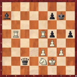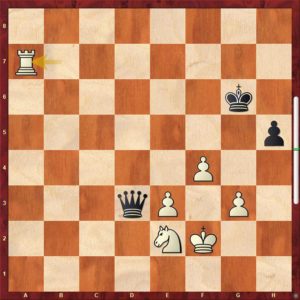 Vynuceno. Nelze 80. Vfe5? pro Sxe3+! ani 80. Vbe5? pro stejný úder 80. … Sxe3+! Střelce nelze vzít ani v jedné variantě, vždy visí věž …