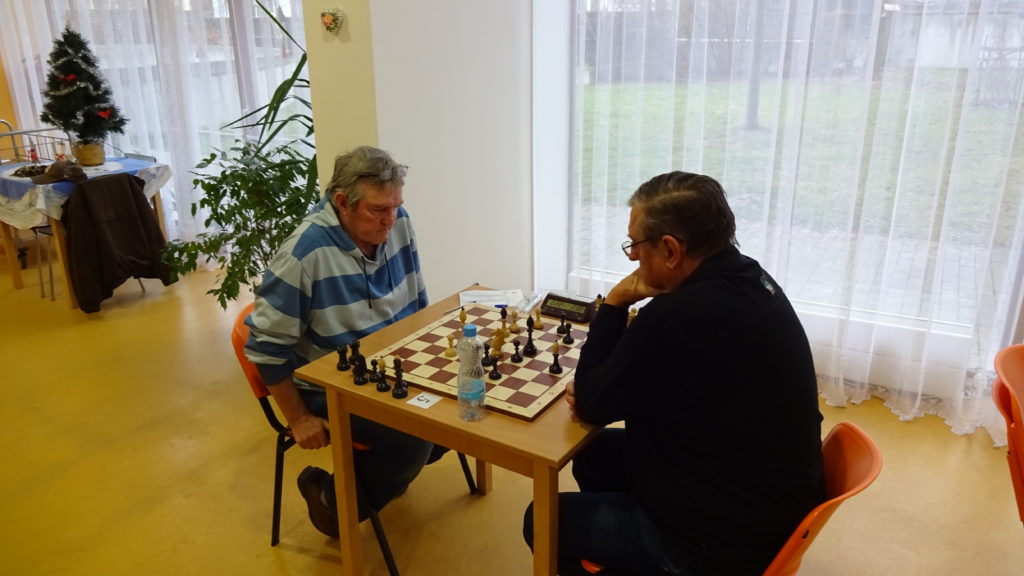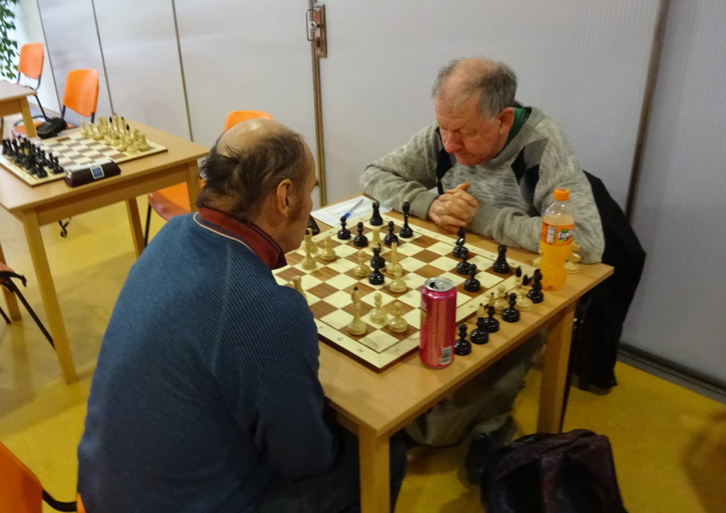 Teďka se to ale začíná obracet k lepšímu. Vedle mě vítězí Lojza Bartoš, hraje proti Pircce a od začáku stojí na výhru, dokonce v 15. tahu mohl získat čistou figuru, to ale bohužel přehlíží. Nevadí, stojí stále na výhru a postupně vítězí. Stav 1 – 3
