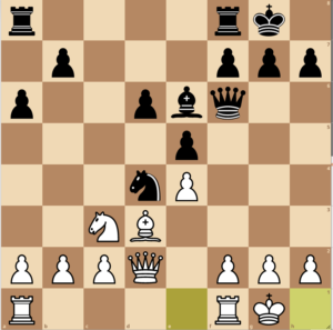 Tah je sice správný, ale sotva jsem zmáčkl myš, polilo mě horko. Teď dostanu Jf3+!! a jde se na párek … Nebo ne??? David se zde zamyslel snad na celé dvě minuty! a nakonec zatáhl … 14. … Vac8. Pozice je asi mírně lepší pro bílého, hrálo se dál. Co by tedy následovalo po „háku“ Jf3+?