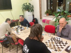 Milan nezareagoval správně, brzy byl o pěšce kratší. Pak jsem odešel domů. Co jsem pak slyšel, tak se hra mohla „zašmodrchat“, ale nezašmodrchala :-). Tomáš zvítězil a zcela jednozančně míří k vítězství v turnaji. To je pro dnešek vše, za týden je na pořadu 5.kolo, snad úplné …