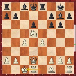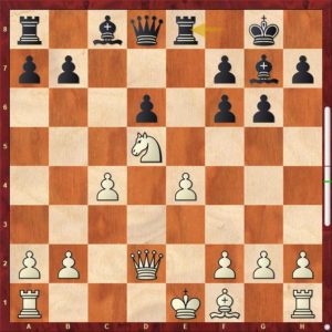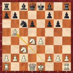 Vznikla pozice před prvním diagramem. Černý stojí skvěle, má dvojici střelců, visí už pe4, bílý má jednoduše velké problémy. A velká rošáda problém neřeší, právě naopak. Jak partie dopadla, můžete zjistit zde …