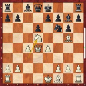 Pozice vzniká po 1.e4 c5 2. Jf3 Jc6 3.d4 cxd4 4. Jxd4 g6 5.c4 Jf6 6.Jc3 Jxd4 (Více se hrává „běžné“ d6, Sg7 a 0-0) 7.Dxd4 d6 8.Sg5 (asi nejběžnější je 8.Se2) Sg7 a když nyní zahraje bílý 9.Jd5? s vizí rozbití královského křídla černého, se zlou se potáže! Btw. trenérská poznámka. Bílý nedokončil vývin a táhne podruhé již vyvinutou figurou!