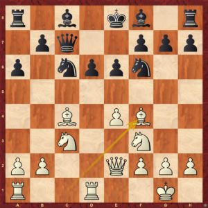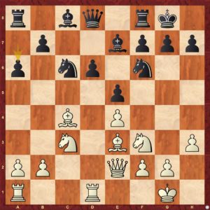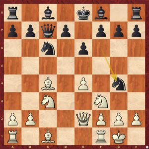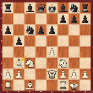 Velmi známá pozice. Kdo zde zahraje 9. h3?? ten okamžitě "umrzne" na Sibiři :-))) po 9. ... Jd4! a černý vyhraje ...