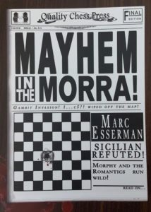 Začnu velmi zajímavou publikací. V roce 2012 vydal americký mezinárodní mistr Marc Esserman knihu Mayhem in the Morra!, jakousi povinnou bibli pro přívržence tohoto zahájení. Kdo by se chtěl v gambitu „pohrabat“, zde je: