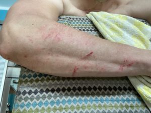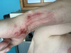 Kombinace štěrku, mírného svahu, zatáčky a většího kamene způsobila, že heslo „sportem ku zdraví“ bylo zcela naplněno …