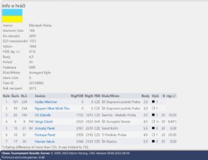 Systém losování v prvních třech kolech byl takový, se kterým jsem se kdysi už setkal na OPEN Tatry. Aby se předešlo opravdu velkým elovým rozdílům v prvních kolech, byly první půlce připsány uměle 2 body a tito pak byli nasazovani proti sobě. Po odehrání třech kol se pak umělé body odečetly, celé pole se „sešlo“ a hrálo se už „normálně“.