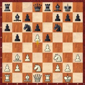 Diagram č.3 - Poziční chyba 11 ...f5? Ve francii je důležitá protihra, velmi často se hrje správné f7-f6!