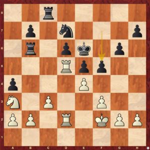 Další ukázka je pěkným příkladem na ztrátu koncentrace a důkazem, že šachy jsou krutým sportem :-). V pozici se cca 30.tahů "nic nedělo". Stačil jeden nepozorný tah a šlo se domů ...