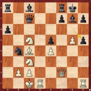 První diagram je k zamyšlení ani ne tak u partie, jako doma! Myslím, že málokdo dokáže ocenit nuance mezi Sd3, Se3, De2 či a3!? „z fleku“ u partie. To (si dovolím tvrdit) nedokáže ani řada silných profesionálů. Takže zde je prostor pro to projít si knihy, databáze, podívat se, jak pozici dokážou uchopit silní GM a následně se rozhodnout dle vlastního vkusu co hrát. Já osobně jsem zvolil ve své partii 7. De2!?, Zdeněk 7.a3!?