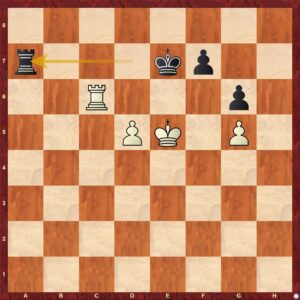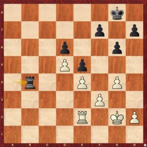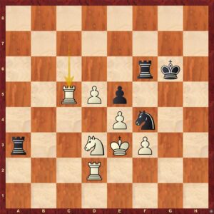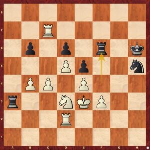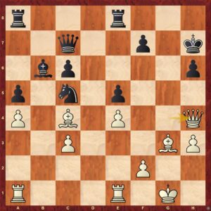 Posledním tahem 28. Kg2?! se bílý dopustil nepřesnosti a černý kolem ní přešel bez povšimnutí, zahrál 28. ... Db6?! a hrálo se vesele dál s neměnným hodnocením += ... Vidíte, co mohl černý zahrát?