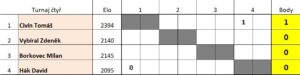 Pravidelný čtenář našich stránek si jistě vybaví, že jsme v loňském roce sehráli v naší klubovně tréninkový turnaj čtyř hráčů. Tento formát se zalíbil a tak odstartoval druhý turnaj, který bude mít stejný hrací systém, jako ten loňský. Jediný rozdíl je v personálním obsazení. Jelikož Milan Hrubý pracuje v Praze a bylo by logisticky nemožné se každý čtvrtek dostavit na partii, připojil se Zdeněk Vybíral. Tedy účastníci jsou tito: