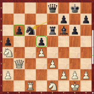 První a velmi zajímavý moment. Honza stál od zahájení značně hůř, v dané chvíli konečně vytvořil také nějakou hrozbu. Hrozí vzetí na d4 vzhledem k slabé první řadě. Když jsem stál nad partií, říkal jsem si, že bílá hrozbu může pokrýt jedině tak, že uhne jezdcem z pole e1, otázkou je kam? Na f3 či d3 ? Počítal jsem, počítal a říkal si, že na d4 lze vzít v obou případech, ale po Jf3 bude stát černý stále hůře … Přišlo však …
