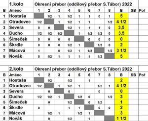 Jak vidno, po prvním kole nebylo vůbec nic jasného! V čele byl sice Luděk s náskokem půl bodu, v závěsu měl dva "vlčáky" Romana a Radka, bez šancí nebyli ani další dva hráči, Lojza a Marian. Druhé kolo tedy mělo veliký náboj.