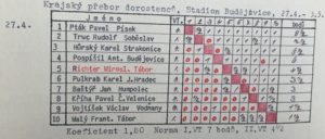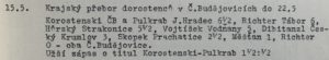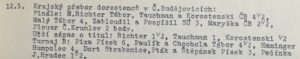 Zde už registrujeme oba kamarády. Zřejmě jako uragán vletěl mezi JČ dorostence Karel Hůrský, který ihned získal přebornický titul! František tentokrát neprorazil, ve finále skončil předposlední.