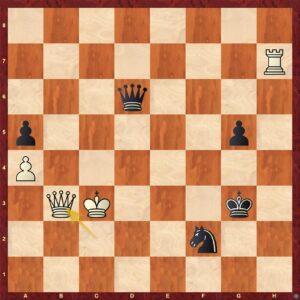 Bílý má čistou figuru, takže o jeho výhře není pochyb, ale vždy je dobře takovou partii co nejrychleji ukončit. Jak byste realizovali nejrychleji převahu bílého?