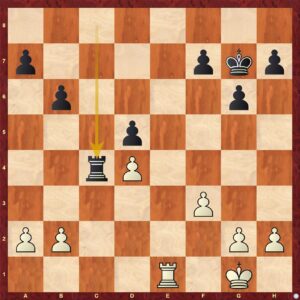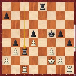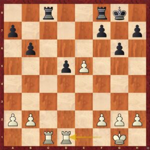 Zde bílý pasivně pokryl svého pěšce, černý s radostí obsadil volný sloupec. Bílý stojí na prohru.