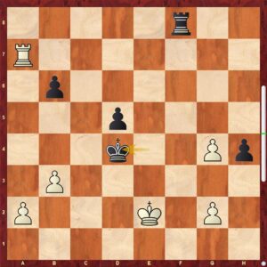 4 a) V této pozici po 42. Va7+ má černý jediný tah k udržení rovnováhy, a to 42. ...Kc8!