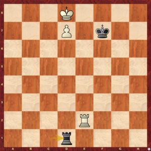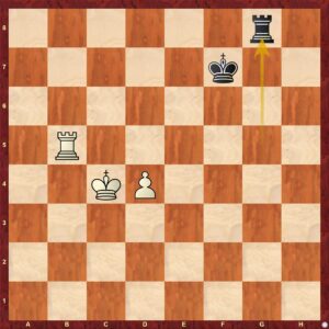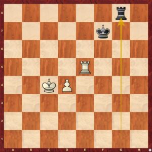 Zde si také připomeňme jedno z pravidel těchto věžovek. Černý král slabší strany by měl stát na tzv. kratší straně a věž šachovat z delší strany ... Zde je tomu naopak.