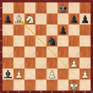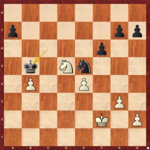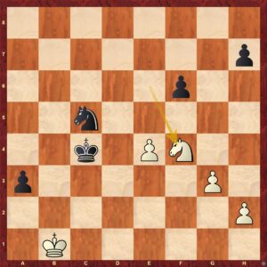 Tato pozice je pouze potvrzením předchozích komentářů. Černá stojí na výhru. Vzpomene-li si čtenář našeho webu na pravidlo Ivana Hausnera (viz. minulé články), pak můžeme konstatovat: Černá má ... lepšího krále, lepší pěšce a řekl bych i lepší figurky (Je5 je excelentní, Jd5 pálí do prázdna) ... 3-0 pro černou a vyhraná pozice.