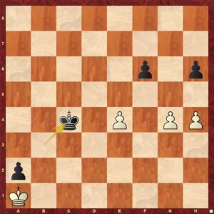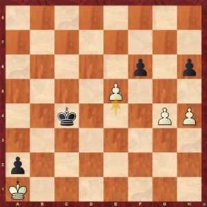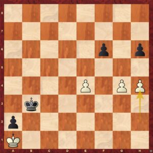 Zničehonic je pozice rovná, bílá však intuitivně (jinak to vysvětlit nelze) potáhla 44. h4? Správné bylo 44. h3!= s remízou, vše je ukázáno opět v přehrávacím modulu. Pěšcovky jsou dost o propočtu a bílá se evidentně propočtem nezaobírala. Tah bych si spekulativně vysvětlil tak, že tahem h4 je bílá blíž poli proměny. Paradoxně to však je horší tah.
