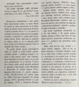 Garri Kasparov následně objasňuje příčinu této hrubky a mimochodem poukazuje na řadu dalších blundrů na nejvyšší úrovni. Zvědavý čtenář si je může v literatuře či databázích vyhledat sám, pokud ho to bude dále zajímat.