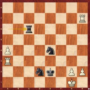 Viktor Korčnoj v silné časové tísni zahrál 39.Va1?? Po 39. ... Jf3+! se vzdal ...
