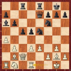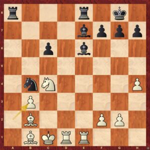 Zpočátku vyrovnaná hra, černý postupně převzal iniciativu. V pozici diagramu se rozhodl pro konkrétní akci ...